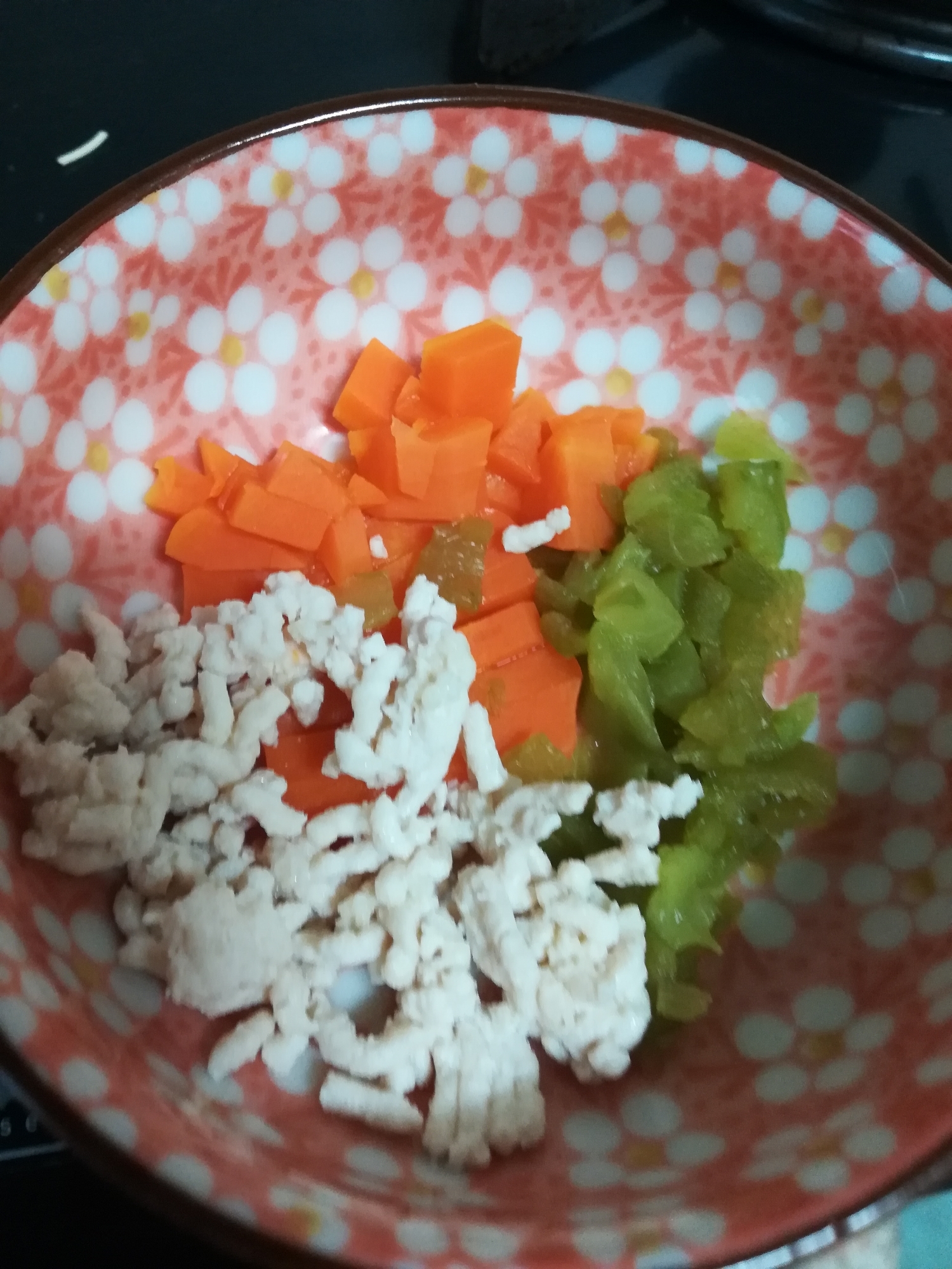 離乳食後期 豚ひき肉とにんじんピーマンの醤油和え レシピ 作り方 By もん1223 楽天レシピ